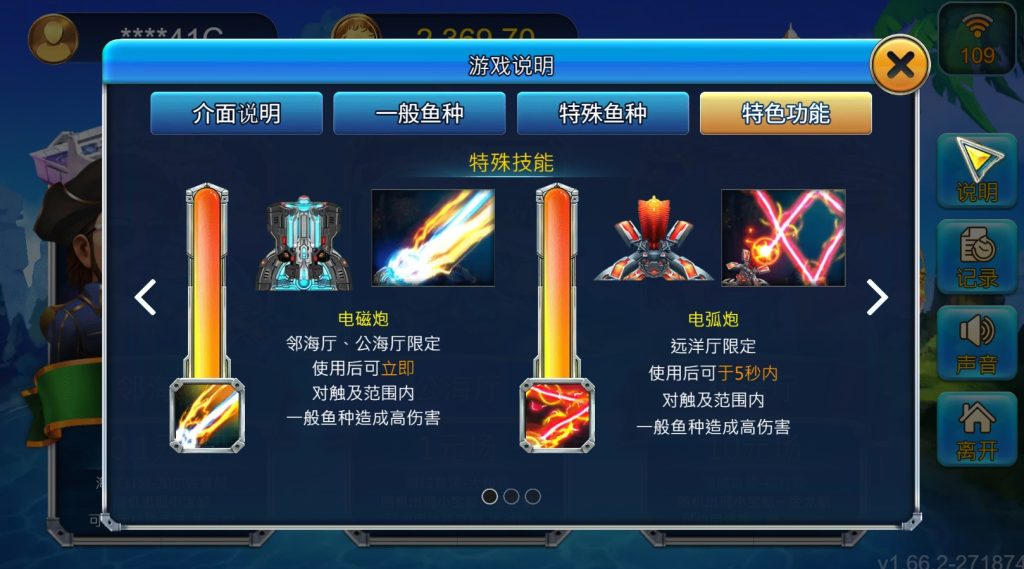 電磁炮:鄰海廳和公海廳的專屬技能,能對目標和範圍內的魚群造成高額傷害,適合想快速清除魚群的玩家。